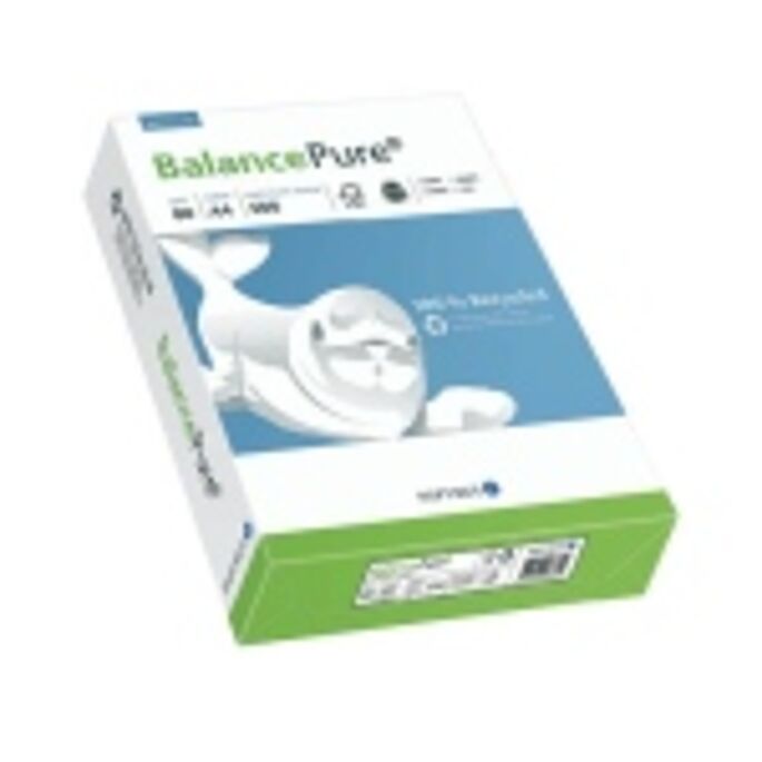 Het papier dat we in ons eigen bedrijf gebruiken en aan klanten leveren, is van het merk BalancePure®. Dat is 100% gerecycled kantoorpapier, gemaakt van hergebruikte vezels.